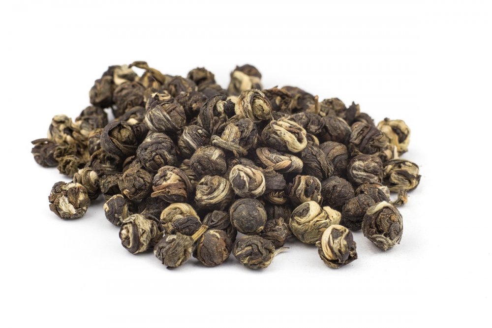 Jasmínové Dračí perly (Long Zhu) jsou vrcholem čínského umění ovoněných čajů. Mladé lístky zeleného čaje jsou ručně svinuty do malých perel, které jsou následně opakovaně prokládány čerstvými květy jasmínu. Čaj do sebe absorbuje omamnou vůni květů, které jsou poté odstraněny. Tento proces se opakuje několikrát, aby se dosáhlo dokonalé harmonie. Po zalití se perly nádherně rozvinou a uvolní delikátní, sladkou a intenzivně jasmínovou vůni. Chuť je jemná, svěží a květinová, bez hořkosti. Je to luxusní čaj, který potěší všechny smysly. Perly jsou velmi vydatné a lze je louhovat mnohokrát, přičemž každé louhování odhalí nové nuance.