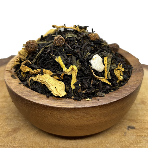 Tropická harmonie je mistrovsky namíchaná směs kvalitního černého čaje, která vás v jediném doušku přenese do exotických krajin i do tepla domova. Sladké tóny kandovaného ananasu se zde snoubí s hřejivou silou koření – skořice, hřebíčku a zázvoru. Kousky mandlí dodávají nápoji jemnou oříškovou hloubku, zatímco květy světlice barvířské směs krásně rozjasní. Je to čaj, který povzbudí tělo a pohladí duši, ideální pro chladné večery nebo jako sladká tečka po jídle.